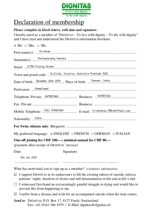 Thus Dignitas has come into the picture. On June 10th I will ask the psychiatrist to give me an indepth medical report based on what he is seeing today. My medical report from Oct 16th 2019 will form one of the recent reports and the report from my indian doctor which is in my home will form the second required report of the two reports. And the life report will be what I have posted on Tamilbrahmins.com. I believe I also need to have one or two consultations with the doctor in zurich. Therefore, I will not be going to India but I will be going to Zurich from Melbourne, via california SFO. Maybe I will ask for a long layover in SFO and because of my Australian PR, maybe I can get a 24 hour visa?? I would love that. I will definitely use it to go to.. nope.. not formfactor but to the Livermore Hindu temple, to see Venkatachalapathy there. He is a great guy you know? I only asked him to reunite me with my family and boom! He sent me back to triplicane.